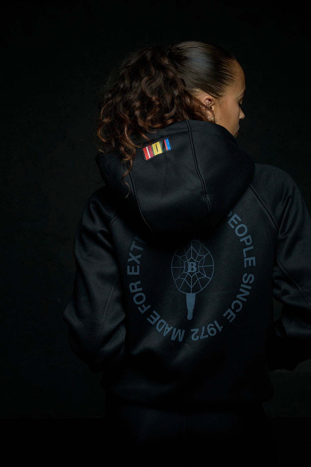 Materialet er en blanding af polyester og bomuld så du får en blød bomuldsfornemmelse samtidig med at den er åndbar og derfor giver en bedre komfort end en ren bomulds hoodie. Brug den til off-duty, til og fra træning, til instruktører i boxen eller gym´en og naturligvis til alle outdoor aktiviteter. Tager du en vindtæt anorak eller jakke over, er du ret godt kørende - også i rigtigt koldt vejr.
